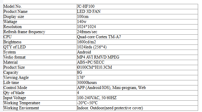 هولوگرام فن سه بعدی 100 سانتی گارانتی شرکتی مدل JC-HGF1000F