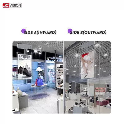 استند آویزان از سقف دیجیتال فوقالعاده باریک با نمایشگر دوطرفه - JCVISION برای مراکز خرید و فروشگاها
